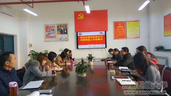 1月3日上午,新闻传播学院在1004会议室召开期末及假期维稳工作部署会。学院领导,各行政办公室、教研室、实验中心负责人及班主任参加了会议。会议由学院党委负责人强发江主持。