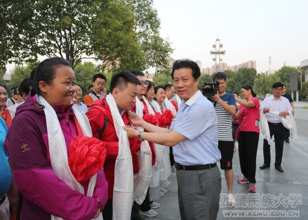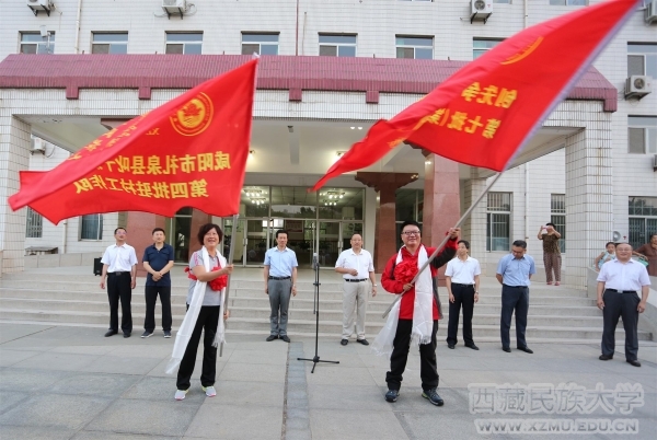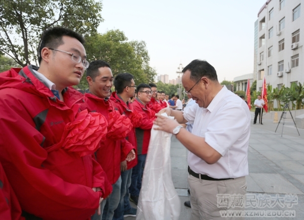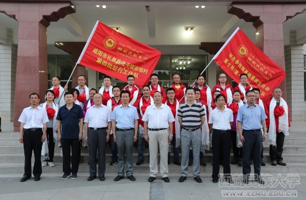 学校党委书记、副校长欧珠和党委副书记、校长刘凯分别向强基惠民阿里地区驻村工作队副总领队冯晨和脱贫攻坚第四批驻礼泉县工作队队长胡艳授旗。欧珠宣布工作队胜利出征。驻村工作队员们满怀激情奔赴西藏阿里地区、咸阳市礼泉县驻村点。教职工代表为工作队队员佩戴大红花,学校领导为队员们敬献哈达并与驻村队员合影留念
