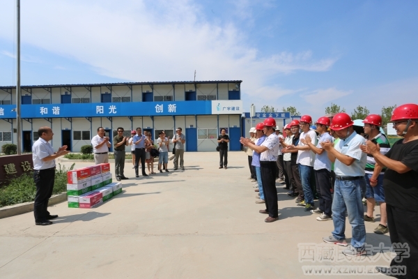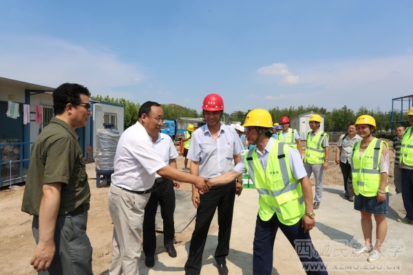 7月20日,时值学校新校区开工建设一周年之际,学校党委书记欧珠,校长刘凯,党委常委、副校长史本林深入新校区建设工地视察项目建设工作,并亲切慰问奋战在施工一线的建筑工人及学校基本建设指挥部现场工作人员,代表学校表达对新校区建设一线工作人员的关怀,并送上了防暑慰问品,为在酷热中坚守在现场的工作人员送去了一份清凉。