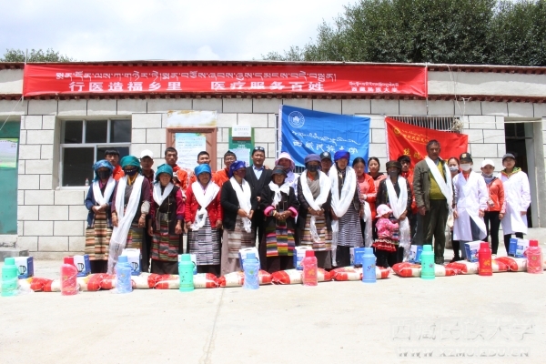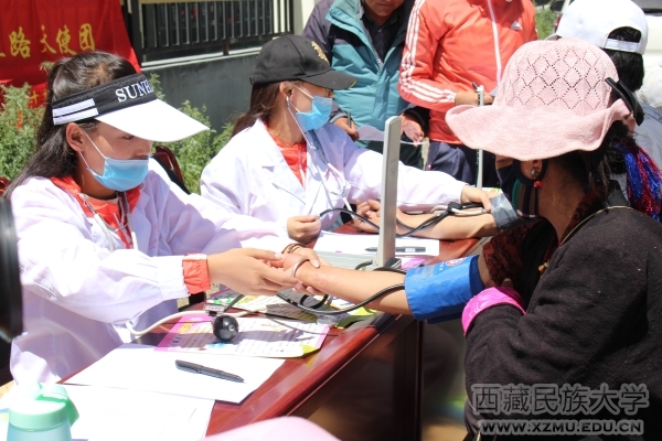 以医学部学生组建的“藏地梦想天使团”,以义务医疗服务为主题,于7月25日至30日在西藏日喀则市开展“三下乡”社会实践服务。团队先后开展了日喀则桑珠孜区义务体检,仁嘎村展开医疗知识宣讲、免费体检以及慰问,曲美乡那塘村开展医疗宣讲及爱心捐助和走进日喀则市敬老院等活动。团队成员为当地群众义务体检,宣讲高血压知识、伤口包扎以及心肺复苏步骤操作,给血压较高的村民提醒饮食以及其他方面知识,给村民宣讲了心肺复苏的基本操作和要领。此次“藏地梦想天使团”活动前期准备联系当地有关部门,对当地居民高血压情况做了详细的统计,统计各个患者对高血压的了解情况以及进行人数统计以进行知晓率、患病率、治疗率、控制率的计算,收集并整理相关数据,并在调研结束后准备进行更加深入的研究,以期对当地群众造福。