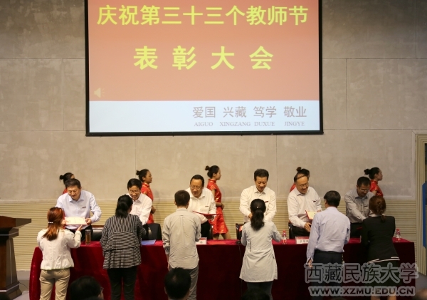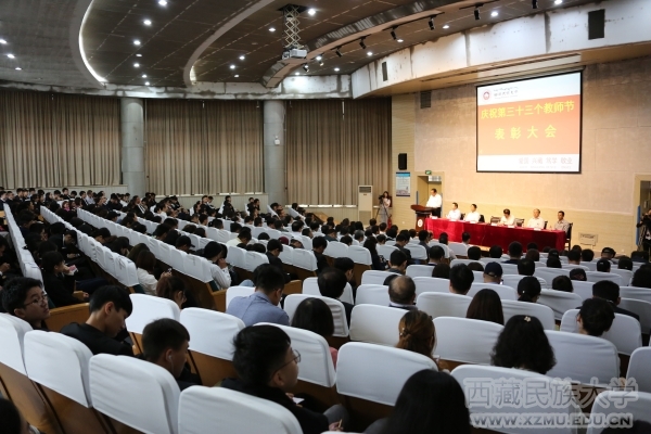 校党委书记、副校长欧珠同志代表学校党委、行政发表讲话。他向受到表彰的老师们表示祝贺,向辛勤工作在教学科研、管理服务一线的全体教职工致以节日的祝福和崇高的敬意。他强调,教师是一个崇高而神圣、受人尊敬的职业和群体,教师是光荣的,也是艰辛的,感谢所有教师在各自工作岗位上的无私奉献。他指出,建设有中国特色、西藏特点,与内地高校同步科学发展的高水平综合性民族大学,是全体民大人的“民大梦”,为早日实现这一“民大梦”,他希望广大教师能够按照习近平总书记提出的“四有好老师”的标准,努力做理想信念坚定的“导师”,引导学生坚定立场,培养社会主义事业的可靠接班人;努力做道德情操高尚的“人师”,言传身教,以良好的修养和高尚的人格来培育和塑造人才;努力做业务能力出色的“名师”,潜心治学,为提高课堂教学效果和学生学习能力而孜孜以求,努力成为知识渊博业务精湛的优秀教师;努力做关爱学生成长成才的“仁师”,把对学生的仁爱之心融入课堂教学和与学生交友之中,相信每个学生都能成为有用之才,帮助他们解决学习和生活中的困难。他希望广大教师能够始终做到以高尚的人格感染学生,以文明的仪表影响学生,以丰富的学识引导学生,以和蔼的态度对待学生,以博大的胸怀爱护学生。