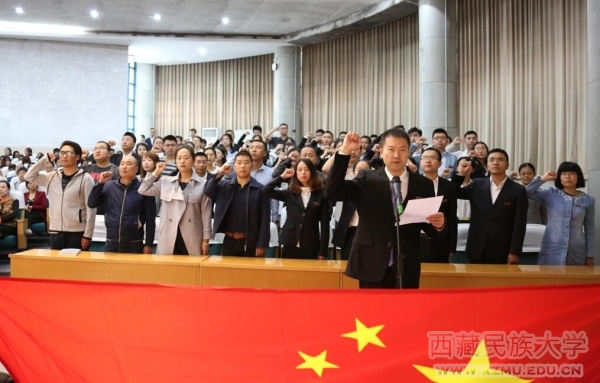 会议举行了新教师入职宣誓承诺,68名近两年入校的教职工在民族研究院马宁副教授的带领下,面向国旗庄严宣誓,承诺做到有理想信念、有道德情操、有扎实学识、有仁爱之心,引领学生锤炼品格、学习知识、创新思维、奉献祖国,为中华民族的伟大复兴贡献力量。庄严的宣誓承诺活动,不仅使新教师心情激动,也使在场的老教师们深受感染,再次感受到教师职业的无尚光荣。