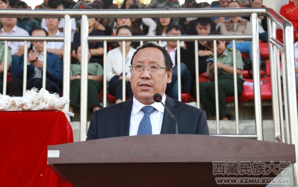 欧珠书记致辞,代表学校向新同学的到来表示欢迎,并鼓励获奖的集体和个人不忘初心,珍惜荣誉,再创佳绩。他深情寄语新同学,希望同学们牢记习近平总书记嘱托,走好人生第一步,系好第一粒扣子,详细规划大学生活,认真思考个人发展,坚守使命,实现梦想,并向新同学提出四点期望:一要坚定理想信念,锤炼意志品质,自觉担负起时代赋予的责任与使命,立志做大事,胸怀大格局,将个人梦想融入强国兴邦的伟业之中,用智慧和担当汇聚起共筑中国梦的磅礴力量;二要有迎接挑战、克服困难、顽强不屈的坚强意志,敢于做生活的强者,让自己成为一个充满正能量的小宇宙;三要珍惜宝贵的青春年华和来之不易的学习机会,把学习作为第一要务,志于学、专于学,不忘初心,勤学善思,保持高考战斗力;四要志存高远,放大格局,脚踏实地,仰望星空,做最好的自己,创精彩的人生。积极参加实验、实训、实习、竞赛等实践活动,敢于打破常规,勇于标新立异,善于开拓创新,通过创新创业项目的研究和实践,训练自己的思维,提升自己发现问题、分析问题、解决问题的能力,在创新创业中增长智慧才干,在实践锻炼中锤炼意志品质,真正成为顺应时代发展的创新人才。