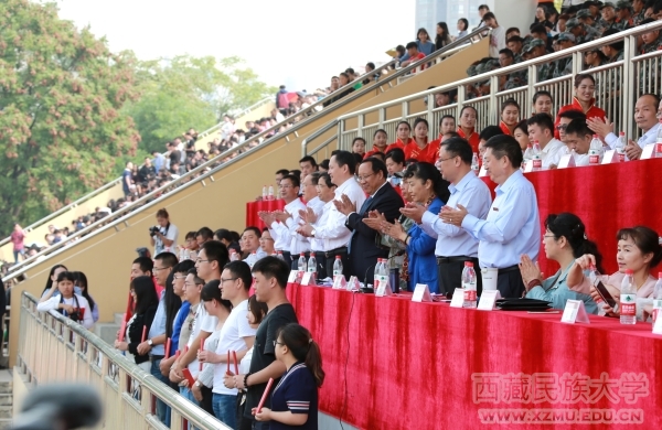 大会在雄壮的国歌声中拉开了序幕。学校党委书记、副校长欧珠在陕西陆军预备役步兵第141师通信科科长刘利新的陪同下检阅了2017级学生组成的16个方阵。随后,在军旗的指引下,经过14天艰苦训练的同学们以饱满的精神状态、昂扬的斗志,迈着整齐划一、坚定有力的步伐从主席台前一一列队通过。学生方阵还相继进行了分列式、军警拳、健美操、擒拿格斗等表演。军训汇报表演充分展现了2017级新生积极向上的精神风貌,赢得了师生的高度认可和赞扬。
