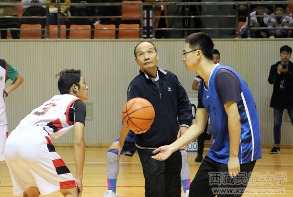 开幕式结束后,张富宏为“秋之实”校园文化节系列活动之“新生杯”篮球赛跳球,拉开篮球赛的序幕。