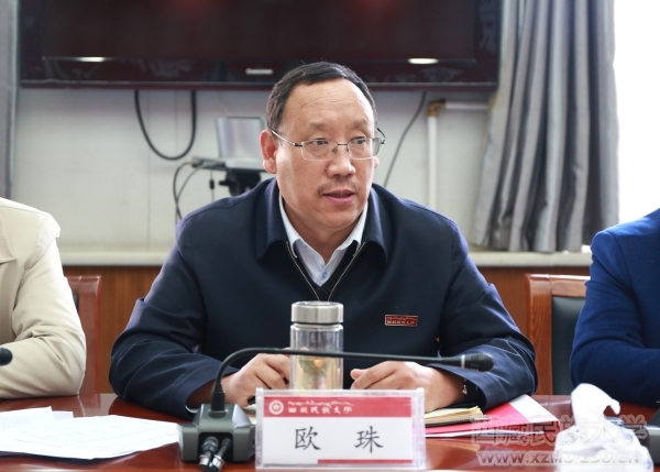 会上,欧珠充分肯定了2017年对口支援工作。他指出,全国高校对口支援西藏高校,既是一项民生工程,也是一项国家战略。在对口支援高校的帮助下,学校在学科建设、人才培养、科研合作等方面取得了长足发展和显著成效。他强调,要按照学校“调整结构,转型创新发展”的战略布局,以建设“双一流”大学和实现“民大2020”为目标,继续深入做好对口支援工作。欧珠对2018年对口支援工作提出明确要求:一是思想上要高度统一。充分认识对口支援工作对学校建设中国特色、西藏特点的高水平综合性民族大学的重要性,把对口支援工作作为“一把手”工程加以落实,部门党政负责人挂帅,邀请专家学者参与,广泛征求教师意见建议,认真研究制订受援计划;二是谋划上要下足功夫。要紧紧围绕学校“双一流”建设和申博、申硕点建设,对照国务院学位办有关要求和自治区对学校的定位,以问题为导向,聚焦短板,既要读懂民大,也要读懂对口支援学校,做到精准对接,有针对性地提出受援计划;三是工作方式上要有新思维。要紧紧围绕“优秀传统民族文化”和“西藏高原科学技术”两个学科群建设,用足用好区内、区外两个优势,合作共赢,重点突破,不仅要继续深挖“7+1”“4+1”的优势资源,还要扩大到与陕西100余所高校的交流合作,大力提升学校科研水平;四是工作措施上要落地、落实、落细。要抓住教育组团式援藏的大好机遇,采取请进来、走出去的方式,多学习、多借鉴其他高校在学科建设、人才培养、科研发展等方面的经验,大力推动学校受援工作再上新台阶。