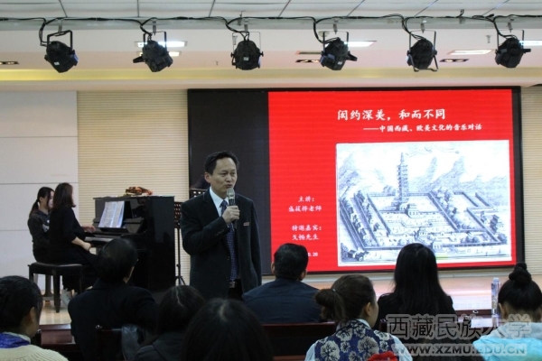 10月28日下午,由研究生院主办、教育学院艺术教研室协办的题为“闳约深美,和而不同——中国西藏、欧美文化的音乐对话”主题讲演在威尼斯官网多功能报告厅举行。学校党委常委、副校长邹亚军,研究生院党委副书记、院长杨维周,研究生院党委副书记刘鹏参加了此次讲座,威尼斯官网师生二百余人聆听了此次讲演。