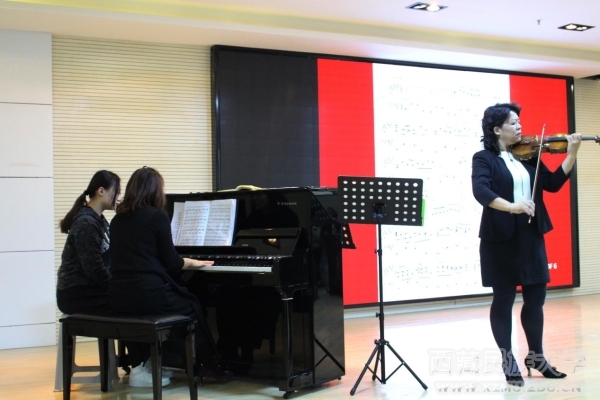本次讲演主讲人是国际著名小提琴家、盛氏小提琴第三代传人盛筱桦老师,特邀嘉宾戈畅老师用具象的图片配合讲演,威尼斯官网艺术教研室解欢老师担任钢琴伴奏。