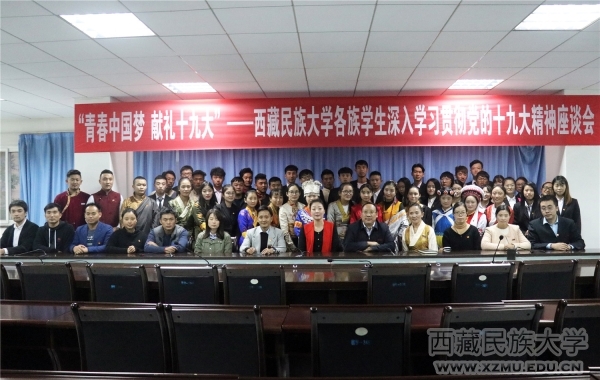 青年团干部们表示,党的十九大召开是我国在全面建成小康社会决胜阶段、中国特色社会主义发展关键时期召开的一次十分重要的大会。作为团的干部,是党的后备军,高举团旗跟党走是我们毕生追求的信念,我们定会肩负育人使命,引导学生思想,全心全意服务广大学生成长成才,为新时代社会主义新西藏的建设与发展培养更多、更好的优秀人才,贡献民大青春力量。青年学生代表们表示,党的十九大报告中习近平总书记对广大青年提出了“青年兴则国家兴,青年强则国家强。青年一代有理想、有本领、有担当,国家就有前途,民族就有希望”。同学们纷纷谈到,我们定会谨记总书记对我们的寄语,珍惜现在来之不易的学习生活条件,坚定理想信念、努力认真学习,练就过硬本领,为今后对社会、对家乡、对祖国做出更大的贡献磨炼自己。同时,同学们表示,身为37266威尼斯官网的一名学生,在母校即将迎来60华诞之际,践行“爱国兴藏笃学敬业”的校训精神,努力维护民族团结是我们义不容辞的责任,我们定会从小事做起,从身边做起,做民族团结的践行者和民族优秀文化的传播者。
