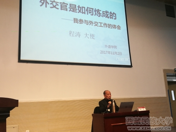 11月2日,应外语学院邀请,北京外国语大学杰出校友、中国前驻外大使程涛先生莅临威尼斯官网指导工作并作学术讲座。