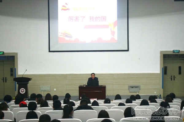 史本林主要从现今的国际形势、国内形势和我国近年来的成就与展望这三方面进行了宣讲。他首先介绍了现今国际形势,从当前的国际经济、政治、军事等方面进行了解析,使师生们清晰地认识到我国现有的较高的国际地位及较大的国际影响力。其次介绍了十八大以来我国取得的社会主义现代化建设的历史性成就,并以此为切入点,让师生们意识到,随着综合国力的提升,中国特色社会主义进入新时代,我国社会主要矛盾已经转化为人民日益增长的美好生活需要和不平衡不充分的发展之间的矛盾。最后总结了近五年来我国在经济建设、区域协调性发展和创新型国家建设方面取得的丰硕成果,展望了到2020年我国全面建成小康社会时的宏伟蓝图,让师生们一定要牢固树立“四个自信”,我们这个历史悠久的文明古国和发展中的社会主义大国,必将会更加的富强、民主、文明、和谐、美丽。
