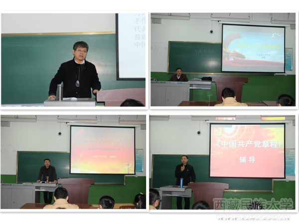 根据培训安排,新闻传播学院党委书记庞晓勇作了学习《中国共产党章程》的专题报告;宣传部副部长、马克思主义学院党委书记段刚辉作了《加强政治建设和纪律建设做新时代优秀大学生》的专题报告;组织部副部长刘怡春作了《端正入党动机,增强党性修养》的专题报告;民族研究院康欣平副教授作了《当前中国形势和历史任务,坚定理想信念做有志青年》的专题报告;马克思主义学院高峰教授作了《党的十九大精神解读》专题报告;马克思主义学院刘权政副教授作了《习近平民族团结思想及其现实启示》的专题报告;党校办公室主任唐玮解读了《陕西省发展党员工作规程(试行)》,同时对入党流程及党员材料的完善进行了详细说明。此次培训班专题讲座由学校党校统一安排组织实施,按照计划各分党校还将继续开展以书记讲党课、分组讨论、优秀党员事迹分享交流会、参观学习和现场教学为主要形式的培训工作。