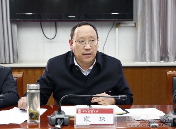 会上,欧珠传达了11日上午全区创先争优强基础惠民生活动第六批驻村工作总结表彰暨第七批驻村工作动员大会和2017年自治区先进双联户表彰总结大会会议有关精神,强调创先争优强基惠民驻村工作已经进入常态化制度化阶段,持续深化干部驻村工作对落实好国家实施精准扶贫战略和自治区未来决胜全面建成小康社会有着重要意义。当前,全区还有44个贫困县,39.6万未脱贫人口,人民日益增长的美好生活需要和不平衡不充分的发展之间的矛盾这一我国社会主要矛盾在西藏表现的尤为突出,带领全区贫困人口于2020年同全国一道实现小康的任务十分艰巨。全校各基层党组织要进一步提高认识,坚定信念,坚决完成好区党委赋予的这一重要政治任务,坚决打赢脱贫攻坚战。