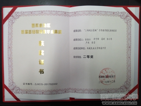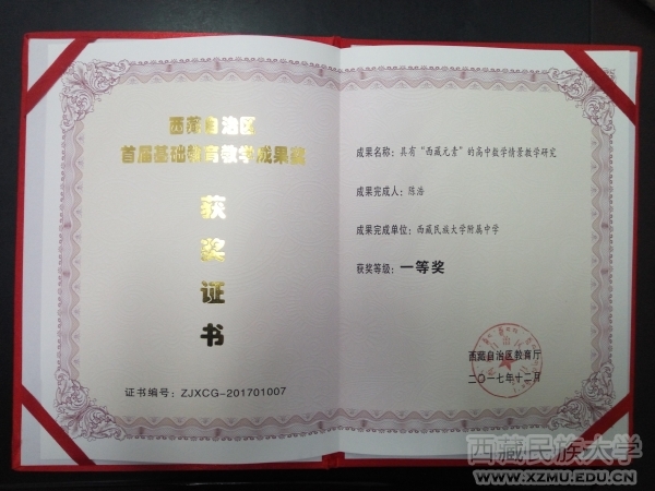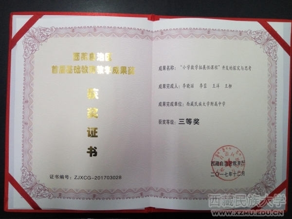 在本届基础教育教学成果奖表彰中,威尼斯官网取得了优异成绩。附属中学陈浩独立主持的《具有“西藏元素”的高中数学情景教学研究》荣获一等奖;岳海江主持的《“三场域五策略”习作教学模式创新探索》荣获二等奖;李晓丽主持的《“小学教学拓展性课程”开发的探究与思考》荣获三等奖。本届成果奖共评出特等奖1项、一等奖9项、二等奖20项和三等奖29项.