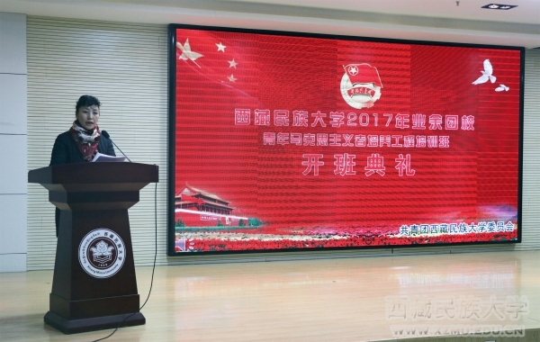 12月15日,开班典礼上校党委常委、副校长扎西卓玛致辞,希望通过本次培训切实加强2017级团员干部队伍建设,提高团员青年的思想和业务素养,使他们对共青团的历史、团员的责任义务有更深的理解,并指出开展培训工作的重大意义。来自新闻传播学院的吕文论代表学员进行发言。各学院(部)团总支书记及来自全校2017级各团支部书记,学校各大学生组织共二百余人参加了本次开班仪式。开班典礼由校团委副书记旦增罗桑主持。