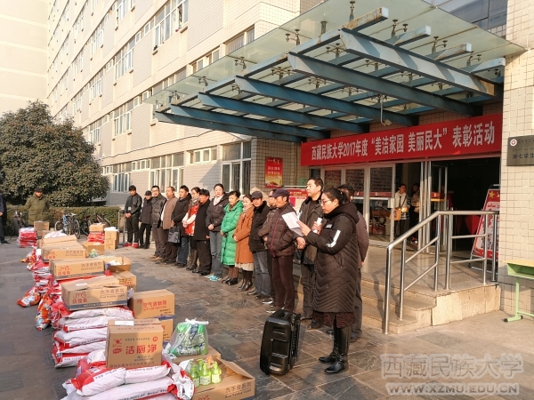 活动伊始,次仁德吉简要介绍了2017年度“美洁家园”活动开展情况,通报获奖学院(部),并代表学生口各部门向活动中辛勤付出的班主任、辅导员老师表示感谢。她指出,自今年3月份实施美洁家园活动以来,各部门各学院高度重视,上下一心,齐心合力,紧密结合“四讲四爱”主题教育实践活动和“三联三进一交友”活动,广泛深入学生公寓,有效发挥“一二三”班级常态化管理机制,努力将学生宿舍打造成思政教育、安全稳定、习惯养成、学生管理、疾病防控、卫生清洁的主阵地。经过大家的共同努力,当前学生公寓宿舍卫生状况明显好转,学生个人习惯得以较大改善,安全隐患得到有效控制,学生个人人身财产安全得到有效保障。