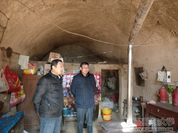 史本林一行在驻村工作队的陪同下首先来到继续教育学院、科研处及2011协同创新中心结对帮扶户崔世祥家,史本林代表学校向其送去慰问金,并详细查看了政府扶贫移民搬迁工程为其安置的新房,当了解到崔世祥新房搬迁,现在日子过得不错,已经实现了脱贫摘帽,史本林很是欣慰并叮嘱“保重好身体,日子将会越来越好”。