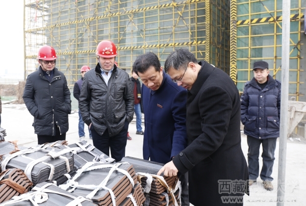 1月13日,学校党委副书记、校长刘凯同志在党委常委、副校长史本林同志陪同下深入新校区建设工地,亲切慰问寒冬中奋战在一线的施工、监理人员,代表学校送去慰问品,表达对新校区建设者的关怀和感谢,并视察了各标段冬季施工作业情况。