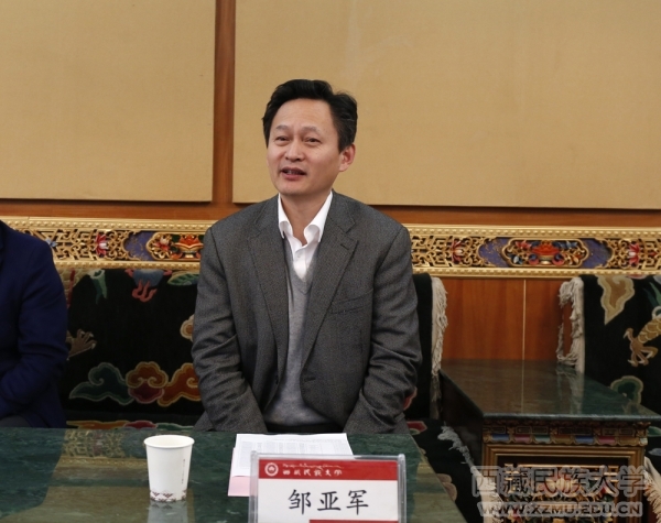 座谈会上,刘凯、邹亚军首先向援助教师献上哈达并欢迎他们的到来。刘凯介绍了学校的发展历程、发展现状以及发展规划等。刘凯谈到,学校诞生于特殊的历史时期,肩负特殊的历史任务,做出了历史性贡献。今年民大将迎来建校六十周年华诞,按照“调整结构、转型创新发展”战略和“民大2020”目标,全校将重点完成“建设一个中心、推进十项工程、办好一件喜事”的年度工作任务。刘凯希望,一是深入学习领会习近平总书记关于治边稳藏重要思想,从讲政治、讲大局的高度充分认识援藏工作的重要意义;二是深刻领会习近平总书记关于“改变藏区面貌,根本要靠教育”的重要内涵,大力发挥专业和工作优势,为西藏的教育事业做出新的贡献;三是切实肩负起援藏工作的重担,进一步了解和认识民大,积极转换角色,适应新的岗位,争做一名优秀的民大人。