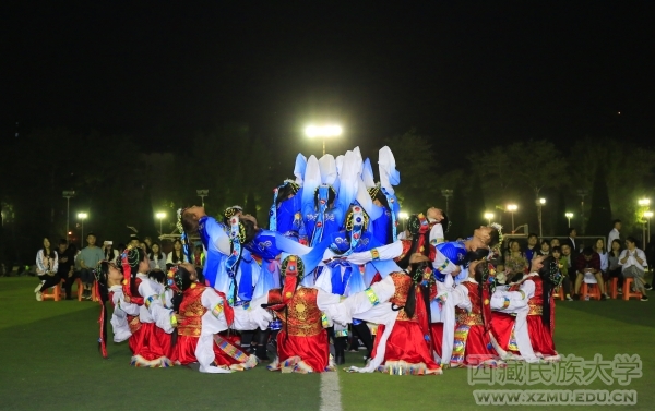 锅庄舞是一种藏族传统舞蹈形式,藏语中意为圆圈歌舞。在各种节庆时节,人们围成圆圈,踏歌而舞。2006年,锅庄舞被列为首批国家级非物质文化遗产。此次参赛的各民族同学心连心、手牵手,用艺术的魅力展现了民族团结精神,感染了全场的每一位观众,激发了大家的爱国心、民族情。