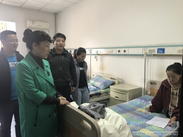 在医院,扎西卓玛详细了解了每一位学生的病情及治疗情况,鼓励学生要谨遵医嘱,积极配合医院进行治疗,争取早日康复返回课堂。如果学生在住院期间遇到困难,可以随时与学院、学校联系,学校将尽最大努力提供相关的帮助。她嘱咐学工处、辅导员要密切关注学生,了解学生的健康状况;对生病住院的学生要悉心照料,解决学生的实际困难,免除学生的后顾之忧。