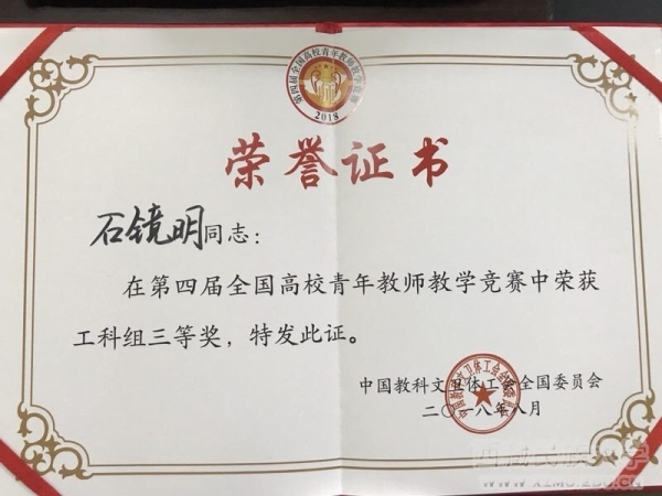 8月28日-31日,第四届全国高校青年教师教学竞赛决赛在浙江师范大学落下帷幕,威尼斯官网医学部石镜明博士荣获三等奖。