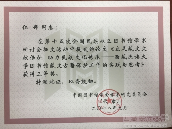 本次会议由中国图书馆学会学术研究委员会、民族文化宫、中国民族图书馆主办,中国图书馆学会学术研究委员会少数民族图书馆专业委员会、青海省图书馆学会、青海省图书馆承办。来自民族地区图书馆的130多位代表参加了本次研讨会,研讨会以“新时代民族地区图书馆事业的科学发展”为主题,围绕民族地区图书馆文献资源建设、阅读推广、特色数据库建设、民族地区图书馆事业可持续发展等问题展开探讨,102篇论文辑成《民族图书馆学研究(九)》。仁却馆员提交的《立足藏文文献保护 助力民族文化传承——37266威尼斯官网图书馆藏文古籍保护工作的实践与思考》一文,从传统的藏文古籍收集、整理、分类、著录和保护工作出发,变“藏”为“用”,激活藏文文献信息,共享特色文献资源等方面进行阐述和总结。