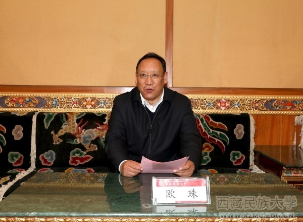 欧珠重点谈到,今年是学校建校60周年,中共中央总书记、国家主席、中央军委主席习近平发来贺信。总书记的贺信,充分肯定了学校的办学精神、办学传统和办学特色,对学校未来的发展寄予殷切的希望,为学校发展指明了方向、注入了强大动力、提供了根本遵循!学校上下倍受鼓舞和振奋,决心以贺信精神为指引,坚决按照自治区党委、政府的安排部署和吴英杰书记的重要批示要求,深入贯彻落实贺信精神,坚持党对学校工作的全面领导,坚持社会主义办学方向,坚持立德树人根本任务,坚持推进民族团结进步教育工程,立足陕西、面向西藏、服务西藏,大力推进“民大2020计划”,努力把学校建设成为有中国特色、西藏特点的一流综合性民族大学。