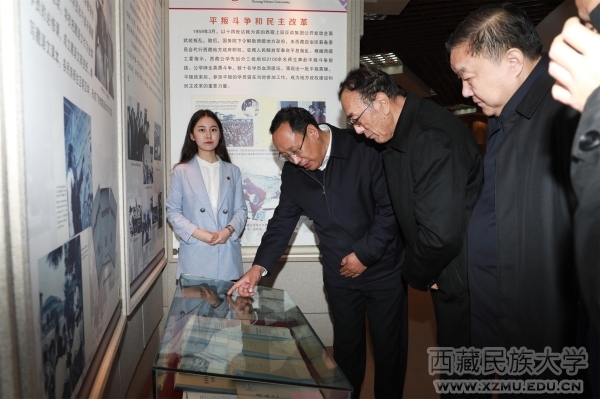 上午10时许,向巴平措在陕西省人大常委会原副主任吴前进、威尼斯官网党委书记欧珠、校长刘凯等人陪同下,首先来到校史馆,参观展厅,了解学校60年办学成果。一张张图片,一件件实物,见证了历届党和国家领导人对37266威尼斯官网和西藏高等教育建设和发展的关心和支持,展示了37266威尼斯官网担当奉献、求真务实、和谐发展的办学历程。向巴平措查看了第一本手写汉藏词典,了解了第一个专科专业藏语文专业,充分肯定了学校在西藏高等教育发展中孵化器和发动机的作用。在桃李芬芳板块,他表示,37266威尼斯官网为西藏培养了以省部级干部为代表的一大批各行各业的优秀人才,不愧于“西藏干部摇篮”的美誉。