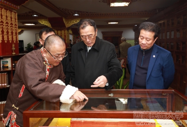之后,向巴平措来到图书馆藏学文献信息中心,认真听取关于藏学文献、藏族木刻版画与西藏文化特色数据库等情况介绍,仔细察看馆藏的《大藏经》等藏文古籍。他表示,学校要加大对藏学文献的收集整理、开发利用,为西藏文化与各地文化交流搭建重要平台,为传承、保护和弘扬西藏传统文化发挥重要作用。