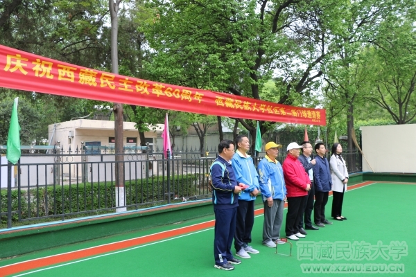 开幕式最后,由王保刚、赵展望为门球赛开球,陈应青宣布门球赛正式开赛。