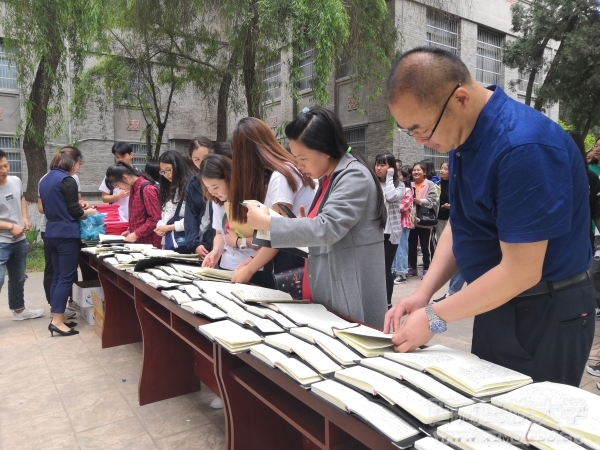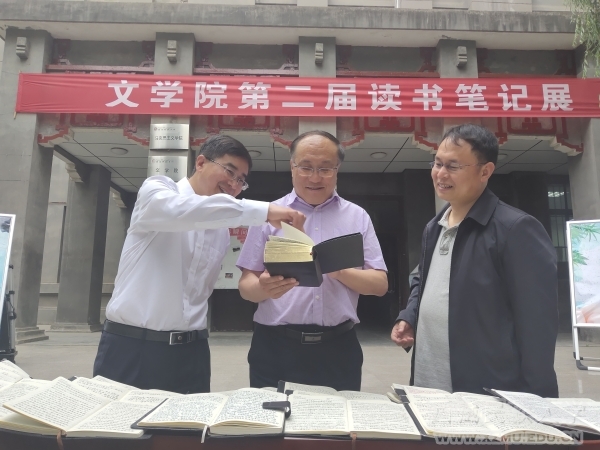展览活动在第三教学楼前举办,共展出89本优秀读书笔记,吸引了大批师生驻足观看。袁东亚与参加活动的师生一起观看了在展台上展出的优秀读书笔记。他表扬展出的笔记字体工整,内容丰富,并就读书笔记中提到的文学作品与师生进行交流。袁东亚还为获得读书笔记一等奖的同学颁发了获奖证书,并与获奖同学合影留念。文学院院长王军君在颁奖仪式上致辞,说明了举办本科生读书笔记展活动的情况和意义。