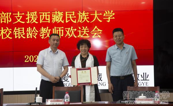 会上,罗旺次仁为银龄教师敬献了哈达,卞利强为银龄教师颁发了证书。各援助高校银龄教师代表作交流发言。他们述说了一年来在民大的工作、生活情况,由衷地赞叹党中央在咸阳办学的决策无比英明,学校从创办至今为党和人民、为西藏各项事业发展培养了一大批优秀干部和专业技术人才。作为银龄教师,有幸在民大支教、支研一年,深感无比自豪,感谢学校各部门在工作生活上无微不至的关心关怀,同时也对民大的发展提出建设性意见,祝福民大的发展越来越好。