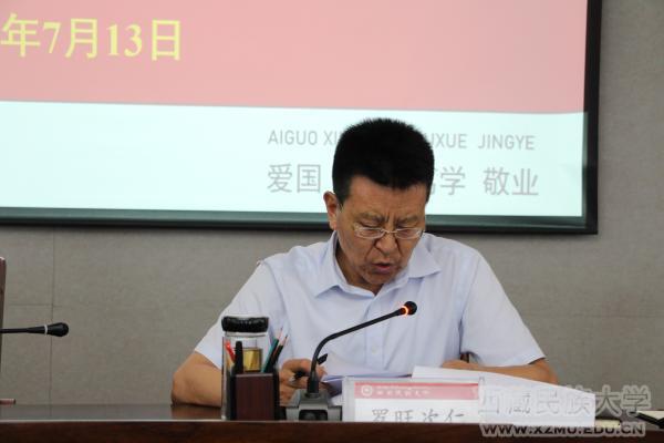 罗旺次仁就做好暑期重点工作进行安排部署。他要求,一要以高度的政治责任感、历史使命感和工作紧迫感,切实加强组织领导,持续推进改进作风狠抓落实工作、“三个意识”宣传教育、巩固党史学习教育成果,为学校事业发展提供政治保障。二要扎实做好疫情防控工作,全力确保师生生命健康安全。要坚决克服认识不足、准备不足、工作不足等问题,切实做好安全教育工作,严格审批制度,严格假期校园管理,落实落细各项工作。三要坚决守好稳定安全底线,全力确保校园和谐稳定。要切实增强大局意识、责任意识,做好值班带班工作,做好校园隐患排查整治,做好在校生的管理服务工作,加强廉政提醒和日常监督工作,切实筑牢安全防线。四要持续推进假期重点工作落实,切实增强干事创业的责任感和紧迫感。要凝心聚力,花大力气下大功夫扎实做好假期教学培训、招生就业、基本建设、科研项目申报、区内学生家访、暑期“三下乡”社会实践活动等各项工作,积极做好假期校园保障工作,认真做好开学前各项准备工作,为圆满完成年度目标任务奋力冲刺,为建设有中国特色、西藏特点、区域一流的现代化大学作出应有贡献,以民大人的澎湃热情迎接党的二十大胜利召开!