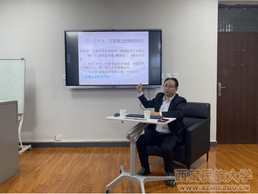 10月24日下午,宝鸡文理学院文学与新闻传播学院副院长孙新锋教授为文学院师生作题为《三足鼎立的陕西文坛》学术讲座。文学院姚芮玲博士主持讲座。