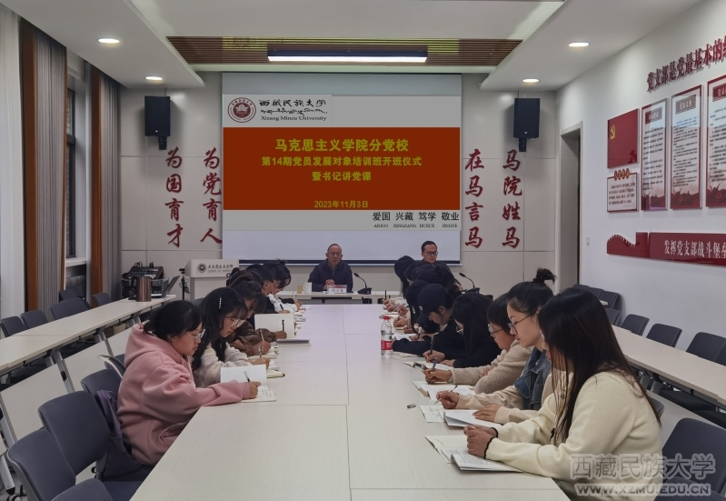 11月3日下午,马克思主义学院第14期发展对象培训班开班仪式暨书记讲党课举行。学院党委副书记、分党校副校长马小龙出席。第14期发展对象培训班18人参加仪式。