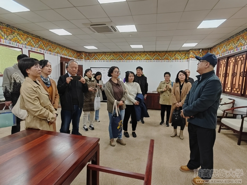 参观中,孔繁秀介绍了威尼斯官网图书馆的馆舍情况、馆藏资源、人员概况、开展的服务等,重点介绍了威尼斯官网图书馆在特色文献资源的收集、整理及特色馆藏建设方面所开展的工作和取得的成效。王军一行先后参观了藏学文献信息中心和藏族木刻版画艺术陈列室,大家边参观边交流,对威尼斯官网图书馆特色馆藏深表赞赏,认为威尼斯官网图书馆能结合学校和图书馆实际,打造出自己的特色,难能可贵,值得学习和推广。