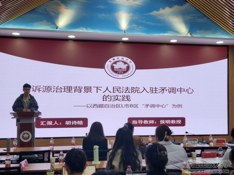 硕士研究生论坛,由法学院十一位硕士研究生同学发言,其中,胡诗晗以矛盾调解中心为核心,对诉源治理这一新兴纠纷解决方式进行讨论。付文雅围绕源远流长历久弥新的枫桥经验,提出一种自治、法治、德治三治融合,共建、共治、共享的三共一体,标准化、精细化、智能化三化协同的边疆地区基层治理路径。贾玛丽认为,在当代,短视频领域已经成为我国著作权侵权的重灾区,分析了短视频著作权保护的重点和难点。张伟、陈烨分别进行了总结与点评。