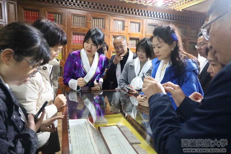 座谈会结束后,重庆市高等学校图书馆馆长一行先后参观了渭城校区图书馆藏学文献信息中心、藏族木刻版画艺术陈列室和秦汉校区图书馆视听空间、民大文库等区域。