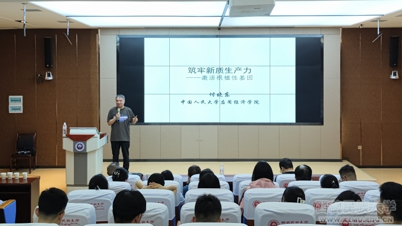 为深入学习领悟习近平总书记关于新质生产力的重要论述精神,提升师生学以致用知行合一的能力,5月8日下午,财经学院邀请中国人民大学区域经济专家、全国经济地理研究会前副会长付晓东教授作《筑牢新质生产力——激活根植性基因探讨》专题讲座。院长陈爱东教授、副院长魏小文教授等十余名老师及百余名研究生共同聆听讲座。